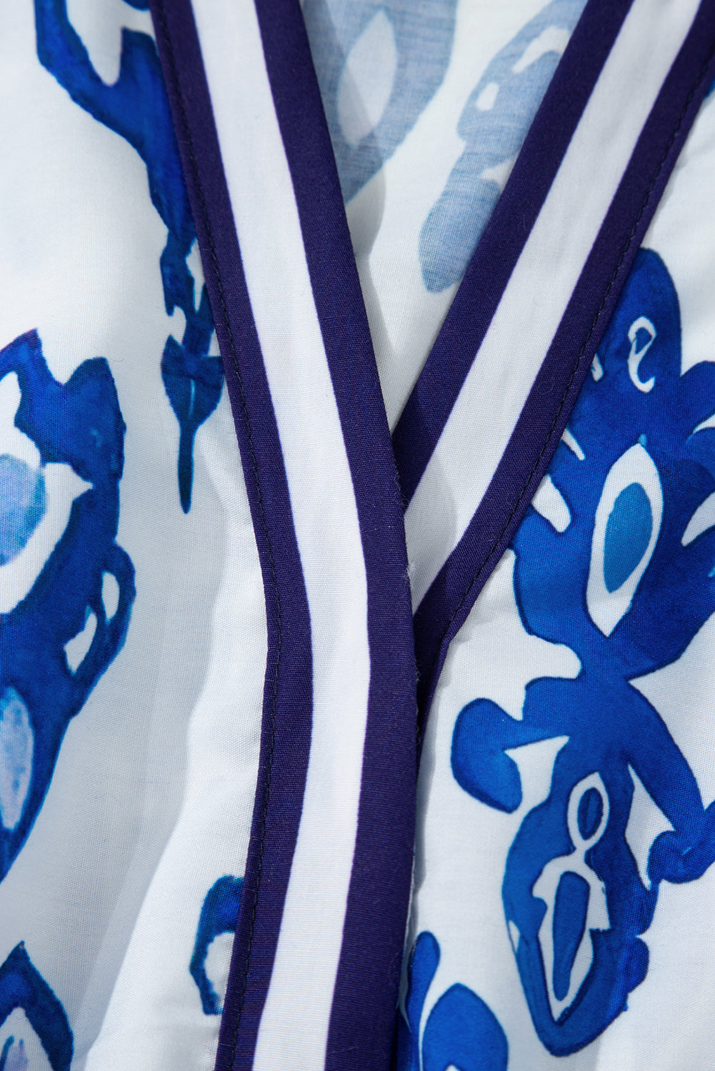 This Blue Floral Maxi Dress blends elegance and comfort with a soft, lightweight fabric perfect for the floral season. Designed with a notched V neckline, short puff sleeves, and striped details at the neckline, it offers a flattering silhouette. The high waist complements side slit pockets, combining style with practicality. Ideal for warm days, this dress balances a charming look with everyday wearability.