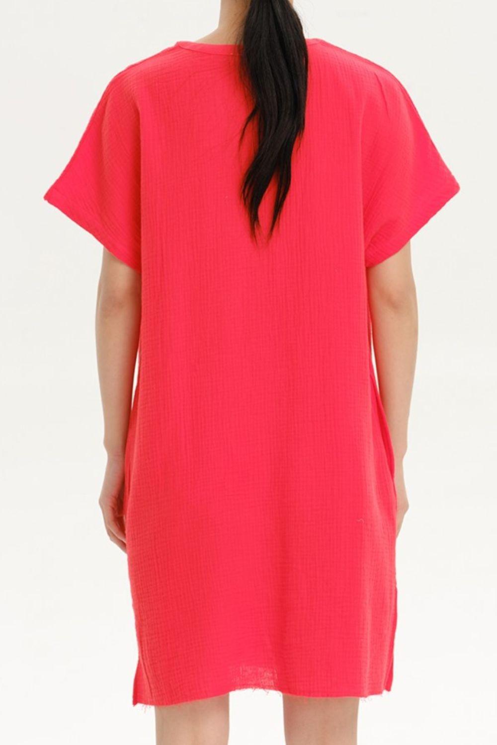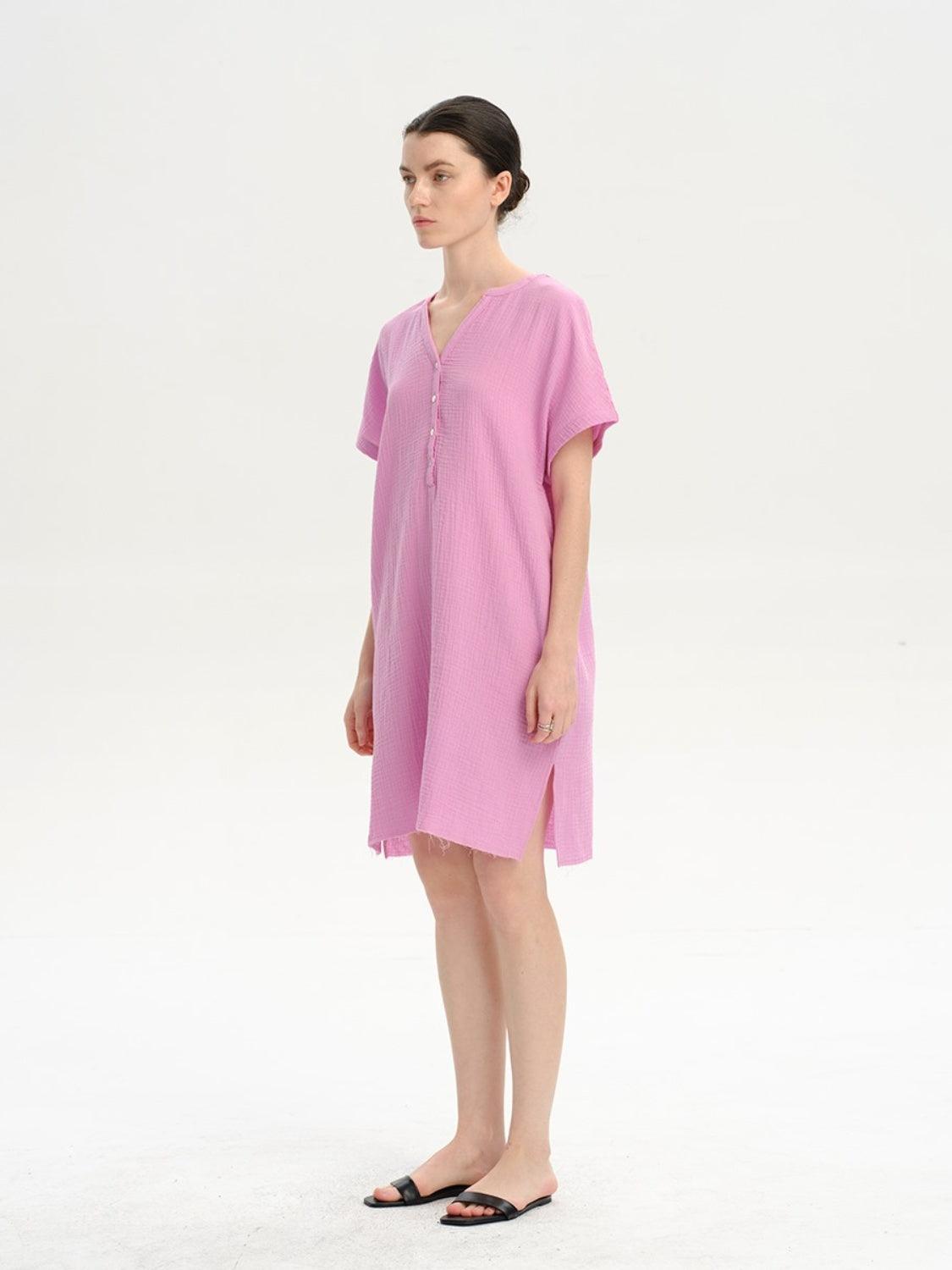 Slit Notched Short Sleeve Mini Dress